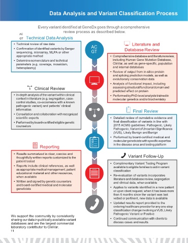 • In-depth analysis of the variant within clinical • Performed by PhD-level analysts trained in