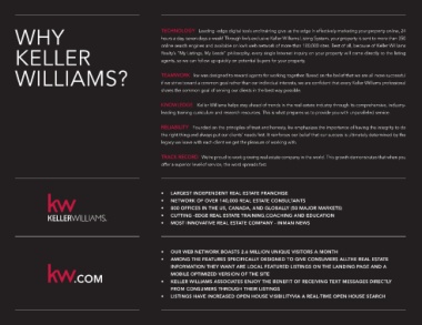 hours a day, seven days a week! Through kw’s exclusive Keller Williams Listing System, your property is sent to more than 350