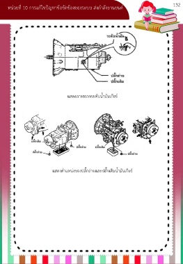 132 หน่วยที่ 10 การแก้ไขปัญหาข้อขัดข้องของระบบ ส่งก าลังยานยนต์ แสดงการตรวจระดับน้ ามันเกียร์ แสดงต าแหน่งของปลั๊กถ่ายและปลั๊กเติมน้ ามันเกียร์