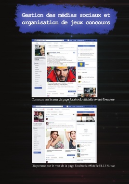 Gestion des médias sociaux et organisation de jeux concours Concours sur le mur de page Facebook officielle Avant-Première Diaporama sur le mur de la page Facebook officielle ELLE Suisse