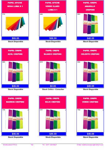 Distribuidora P.R.O. 182 Tel.: 0351-458-8927 E-Mail: distribuidorapro@hotmail.com