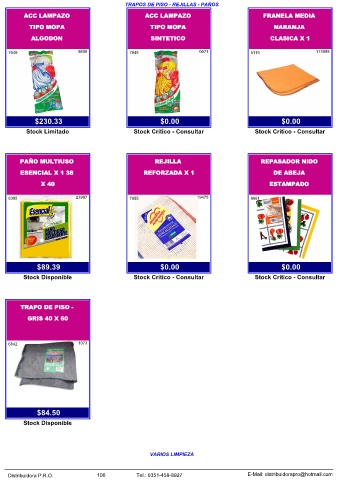 Distribuidora P.R.O.           106           Tel.: 0351-458-8927                    E-Mail: distribuidorapro@hotmail.com