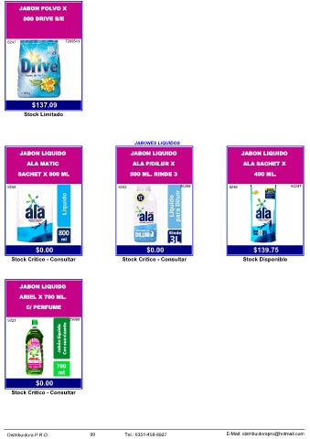Distribuidora P.R.O. 99 Tel.: 0351-458-8927 E-Mail: distribuidorapro@hotmail.com