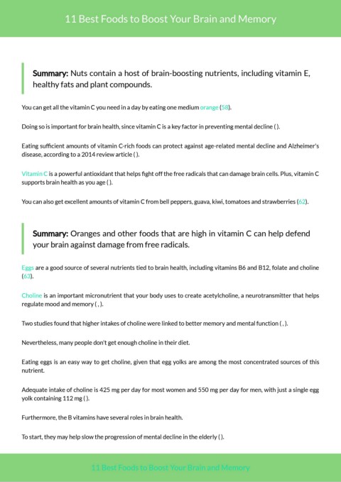 Vitamin C is a powerful antioxidant that helps ght off the free radicals that can damage brain cells. Plus, vitamin C