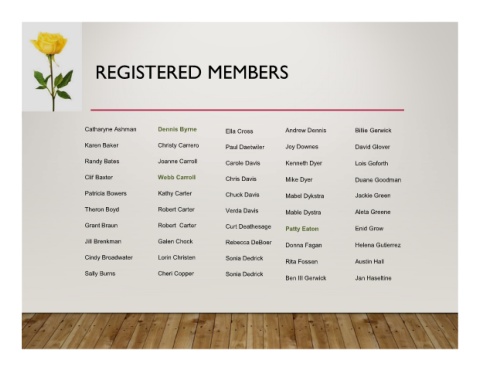 Patricia Bowers Kathy Carter Chuck Davis Mabel Dykstra Jackie Green