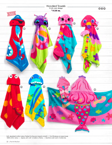 Soft, absorbent cotton velour. Perfect for the pool, beach or bath! | Fun 3D pieces on every towel. 100% cotton velour. | Approx. 46” x 24” (116.8cm x 70cm). | Machine wash warm. Tumble dry.