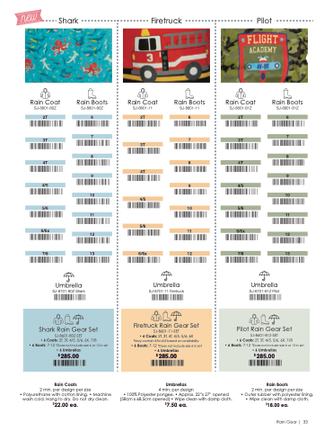 • 6 Coats: 2T, 3T, 4T, 4/5, 5/6, 6X *May contain 4Tor 4/5 based on availability. • 6 Boots: 7-12 *Does not include size 6 in set • 6 Umbrellas