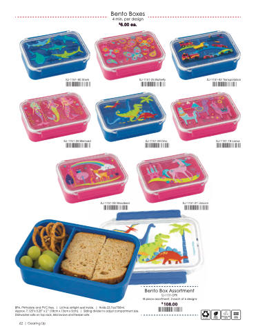 Approx. 7.125”x 5.25” x 2’’ (18cm x 13cm x 5cm). | Sliding divider to adjust compartment size. Dishwasher safe on top rack. Microwave and freezer safe.