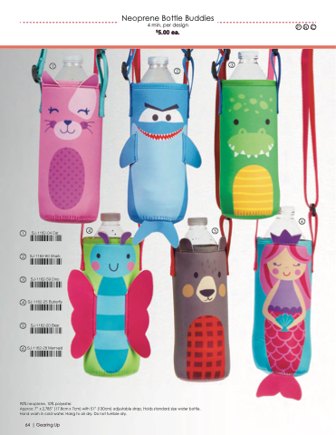 Approx: 7” x 2.785” (17.8cm x 7cm) with 51” (130cm) adjustable strap. Holds standard size water bottle. Hand wash in cold water. Hang to air dry. Do not tumble dry.