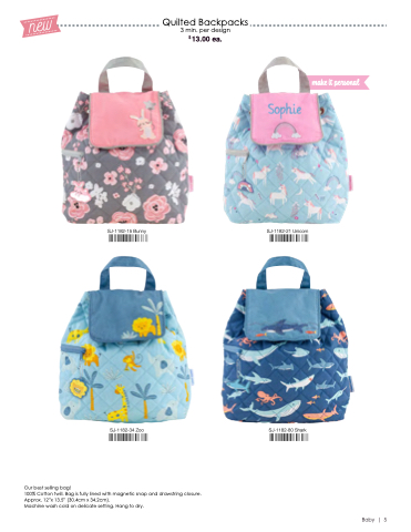 100% Cotton twill. Bag is fully lined with magnetic snap and drawstring closure. Approx. 12”x 13.5” (30.4cm x 34.2cm).
