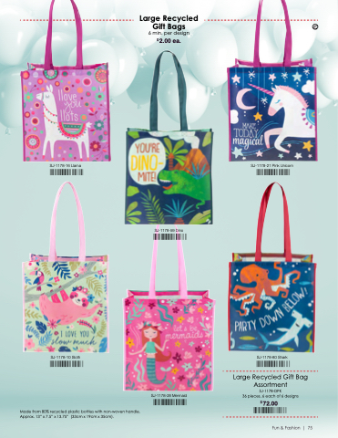 Made from 80% recycled plastic bottles with non-woven handle. Approx. 13” x 7.5” x 13.75” (33cm x 19cm x 35cm).