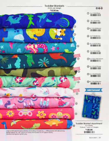 Large pocket great for personalization and holding a favorite toy | 100% polyester with velboa lining. Blanket approx. 50” x 36” (127cm x 91.5cm). Front pocket 10” x 9” (25cm x 23cm).