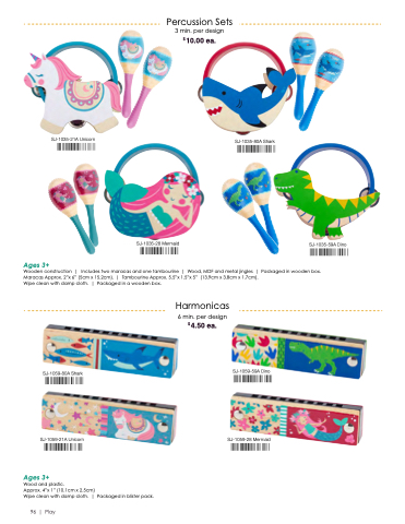 Wooden construction | Includes two maracas and one tambourine | Wood, MDF and metal jingles | Packaged in wooden box. Maracas Approx. 2”x 6” (5cm x 15.2cm). | Tambourine Approx. 5.5”x 1.5”x 5” (13.9cm x 3.8cm x 1.7cm).