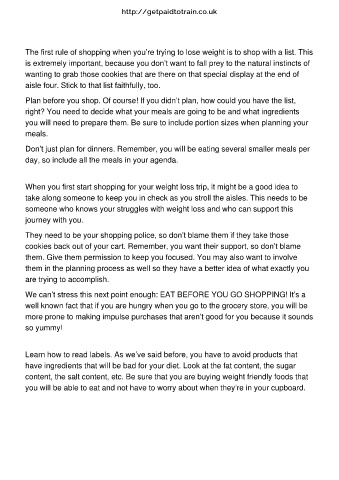 The first rule of shopping when you’re trying to lose weight is to shop with a list. This
