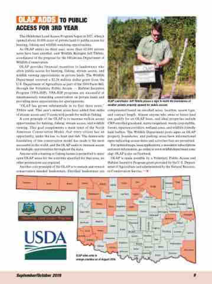 OLAP is made possible by a Voluntary Public Access and Habitat Incentive Program grant provided by the U.S. Depart- ment of Agriculture and administered by the Natural Resourc- es Conservation Service.