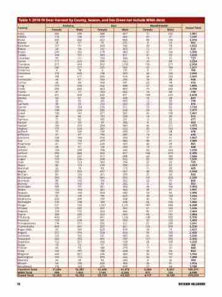 Table 1: 2018-19 Deer Harvest by County, Season, and Sex (Does not include WMA data)