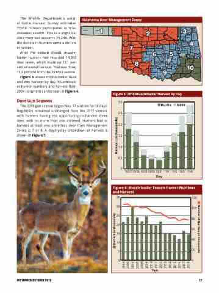The Wildlife Department’s annu- al Game Harvest Survey estimated 77,618 hunters participated in muz- zleloader season. This is a slight de- cline from last season’s 79,248. With the decline in hunters came a decline in harvest.