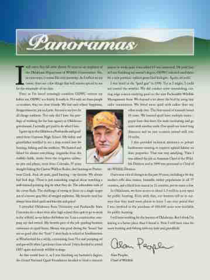 Iwill retire this fall after almost 30 years as an employee of the Oklahoma Department of Wildlife Conservation. Yes, in some ways, it seems like only yesterday. As I reflect on my career, there are a few things that will remain special to me