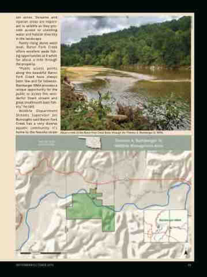 “Public access points along the beautiful Baron Fork Creek have always been few and far between. Bamberger WMA provides a unique opportunity for the public to access this won- derful Ozark stream and great smallmouth bass fish- ery,” he said.