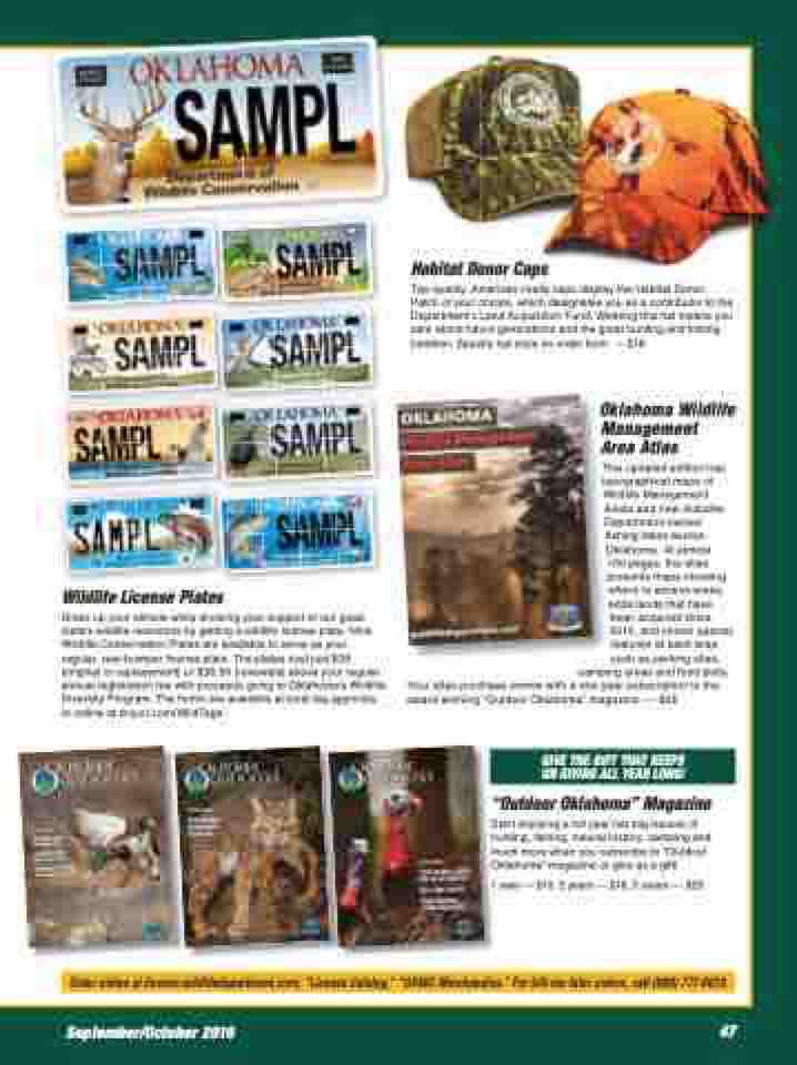 Order online at license.wildlifedepartment.com; “License Catalog,” “ODWC Merchandise.” For bill-me-later orders, call (800) 777-0019.