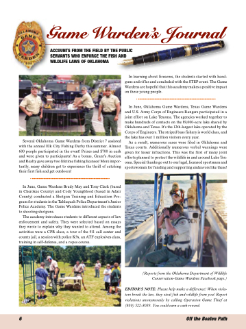 ACCOUNTS FROM THE FIELD BY THE PUBLIC SERVANTS WHO ENFORCE THE FISH AND WILDLIFE LAWS OF OKLAHOMA