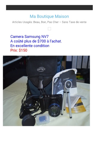 Ma Boutique Maison Articles Usagés: Beau, Bon, Pas Cher – Sans Taxe de vente Camera Samsung NV7 A coûté plus de $700 à l’achat. En excellente condition Prix: $150