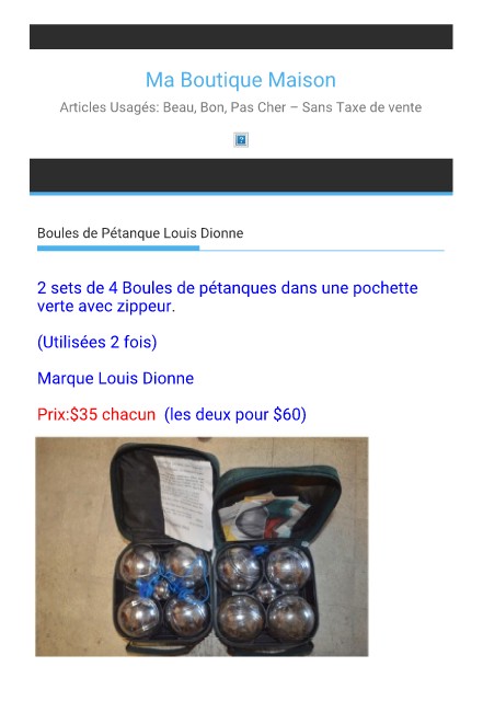 Articles Usagés: Beau, Bon, Pas Cher – Sans Taxe de vente