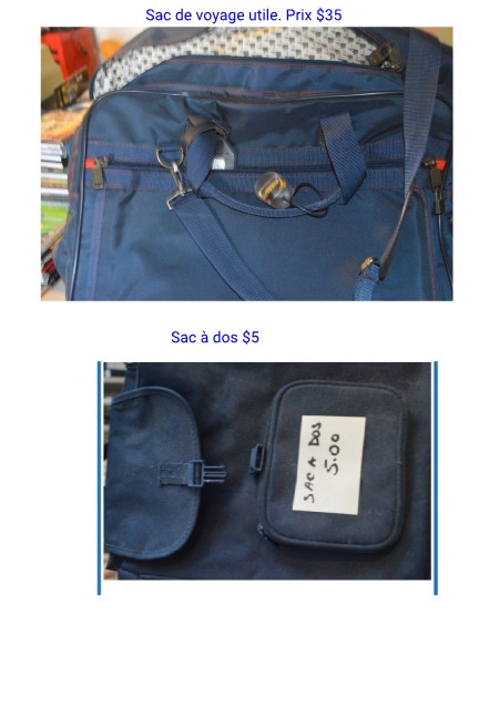 Sac de voyage utile. Prix $35 Sac à dos $5