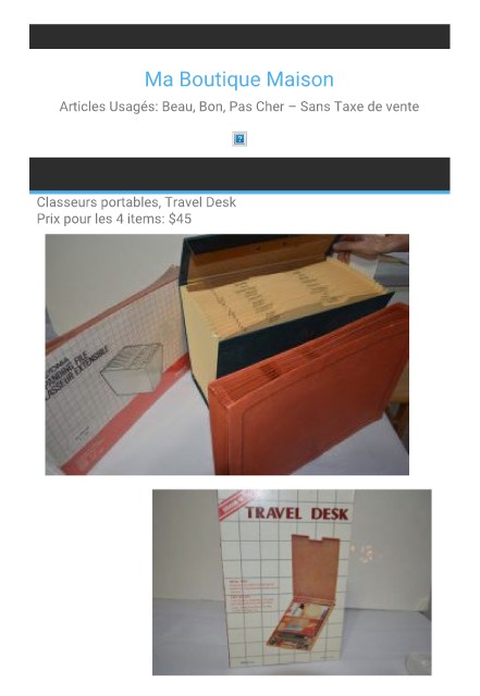 Ma Boutique Maison Articles Usagés: Beau, Bon, Pas Cher – Sans Taxe de vente Classeurs portables, Travel Desk Prix pour les 4 items: $45