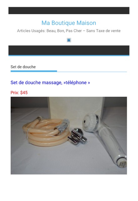 Ma Boutique Maison Articles Usagés: Beau, Bon, Pas Cher – Sans Taxe de vente Set de douche Set de douche massage, »téléphone » Prix: $45