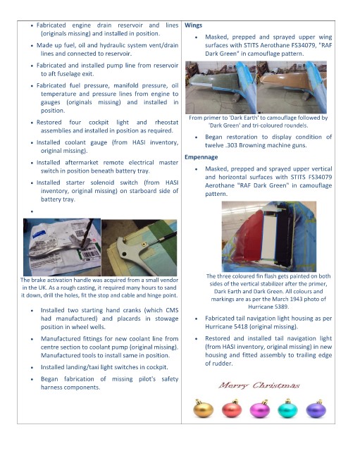 had manufactured) and placards in stowage Fabricated tail navigation light housing as per