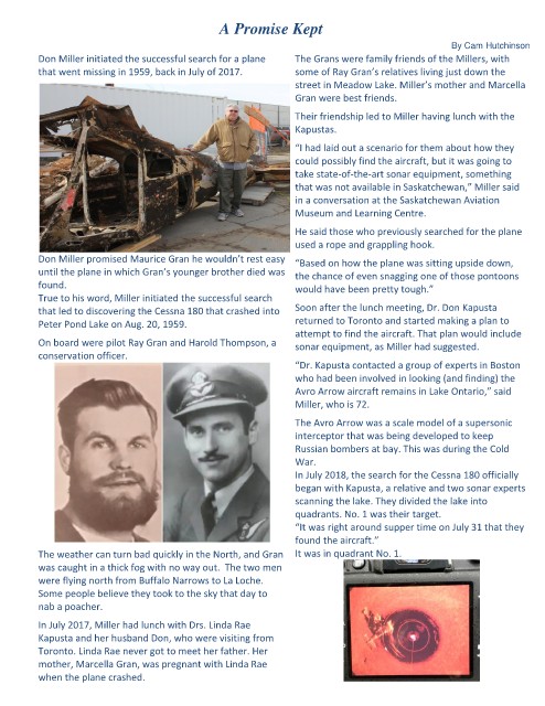 Don Miller initiated the successful search for a plane The Grans were family friends of the Millers, with
