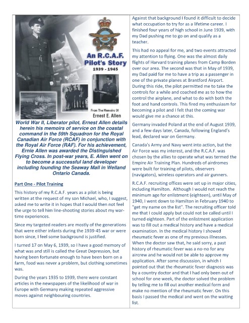 Part One - Pilot Training R.C.A.F. recruiting offices were set up in major cities,