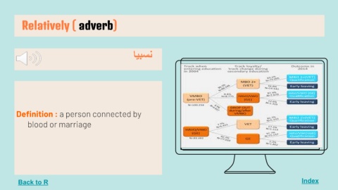 Relatively ( adverb) Index ﻧﺴﺒﯿﺎ Definition : a person connected by blood or marriage Back to R