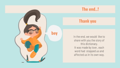bey The end..! Thank you In the end, we would like to share with you the story of this dictionary. It was made by love , each word had stopped us and affected us in its own way.