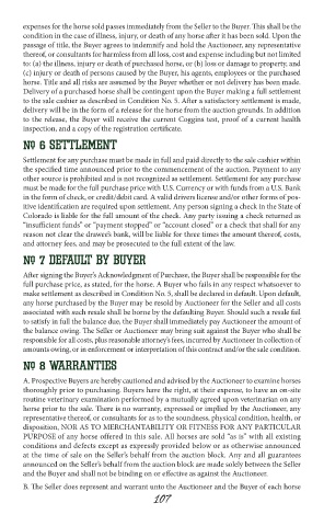 horse prior to the sale. There is no warranty, expressed or implied by the Auctioneer, any