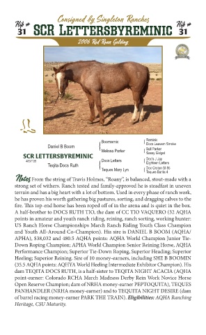 of barrel racing money-earner PARK THE TRAIN). Eligibilities: AQHA Ranching