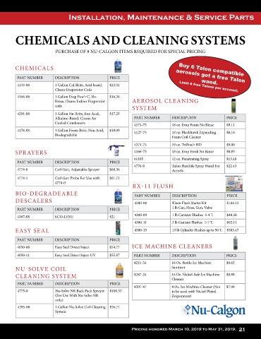 PArT numbEr DEscrIPTIon PrIcE aerosols get a free Talon