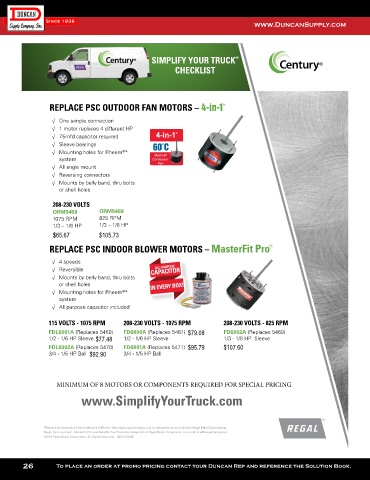 Regal, Century, 4-in-1, MasterFit Pro and Simplify Your Truck are trademarks of Regal Beloit Corporation or one of its affiliated companies.