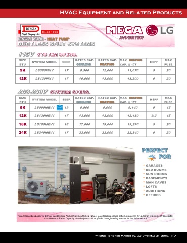 Rated Capacities based on LG Air Conditioning Technologies published values. Max Heating should not be referenced for a design requirement, contractor