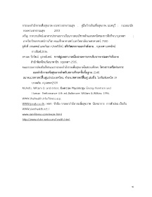 ชูศักดิ์ เวชแพทย และกันยา ปาละวิวัธน. สรีรวิทยาการออกกําลังกาย . กรุงเทพฯ.เทพรัตน