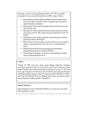 Beberapa substansi dalam pembahasan Revisi UU ITE yang telah