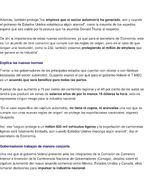 instaladas del sector automotriz, Guajardo explicó el por qué para el gobierno federal el T-MEC