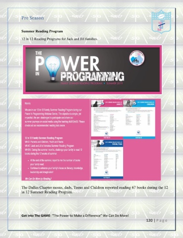 The Dallas Chapter moms, dads, Teens and Children reported reading 67 books during the 12