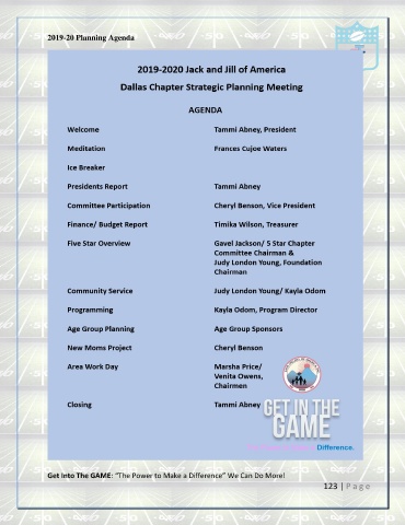 2019-20 Planning Agenda Get Into The GAME: “The Power to Make a Difference” We Can Do More! 123 | P a g e