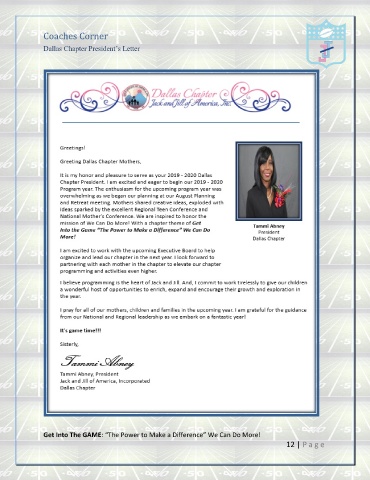 Coaches Corner Dallas Chapter President’s Letter Get Into The GAME: “The Power to Make a Difference” We Can Do More! 12 | P a g e