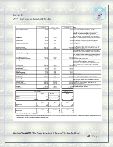 Game Cost 2019 – 2020 Chapter Budget APPROVED Get Into The GAME: “The Power to Make a Difference” We Can Do More! 42 | P a g e