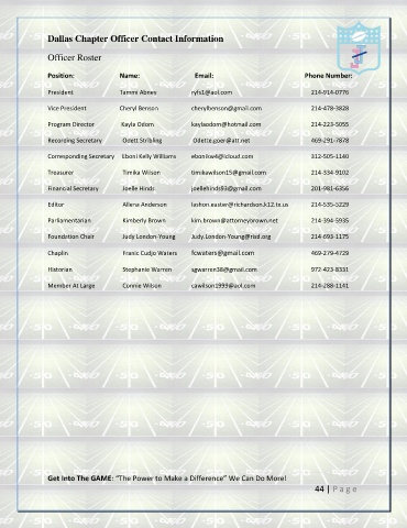 Treasurer Timika Wilson timikawilson15@gmail.com 214-334-9102
