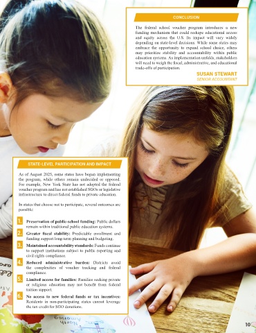 across the country. ► State flexibility: States may opt in and define their own infrastructure to direct federal funds to private education.