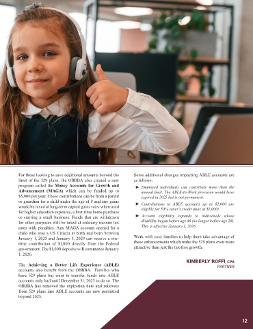career paths. The OBBBA significantly broadens the benefits of a 529 plan starting with the current year, as follows: or guardian for a child under the age of 8 and any gains ► Contributions to ABLE accounts up to $2,000 are